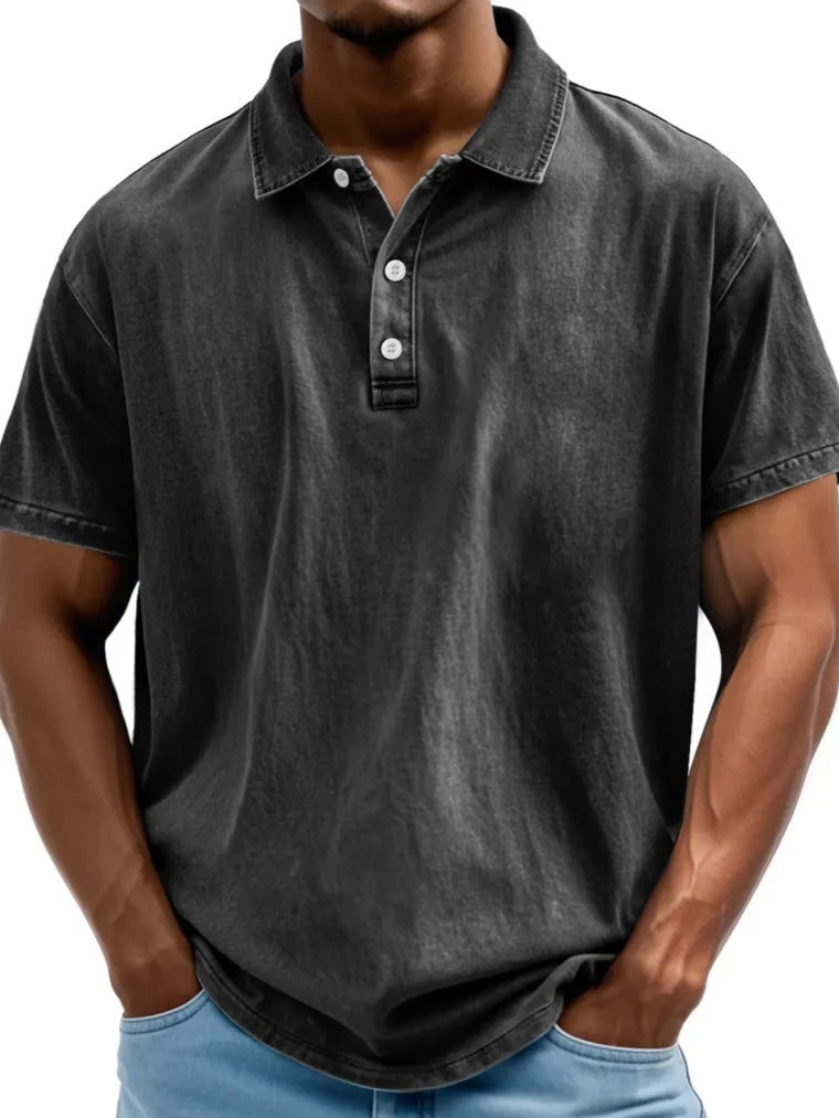 Men's Polo Shirt – Relaxed Fit – Breathable Natural Fiber – Retro Washed Look – Short Sleeve