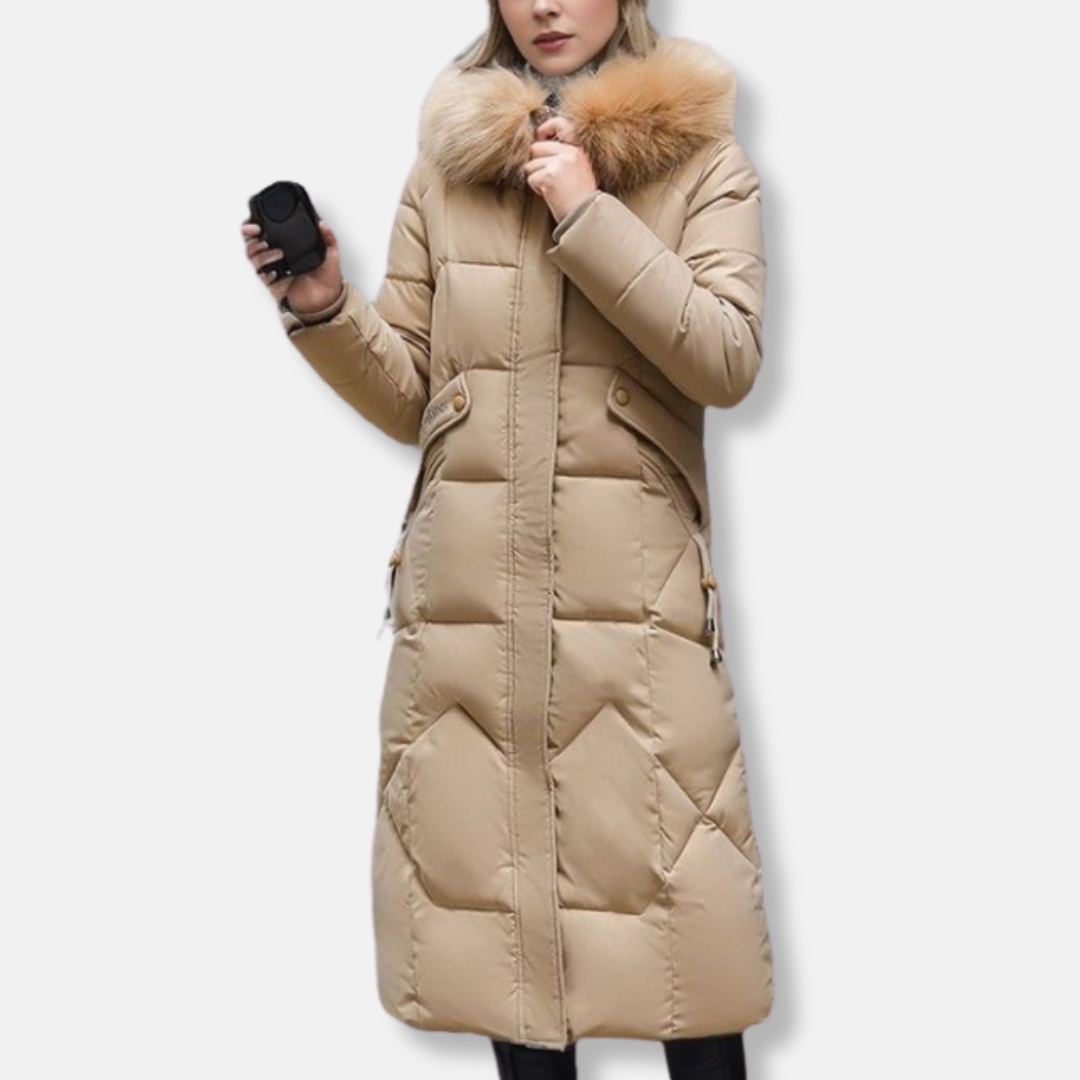 Women's Long Quilted Coat – Slim Fit – Removable Fur Collar – Full Coverage