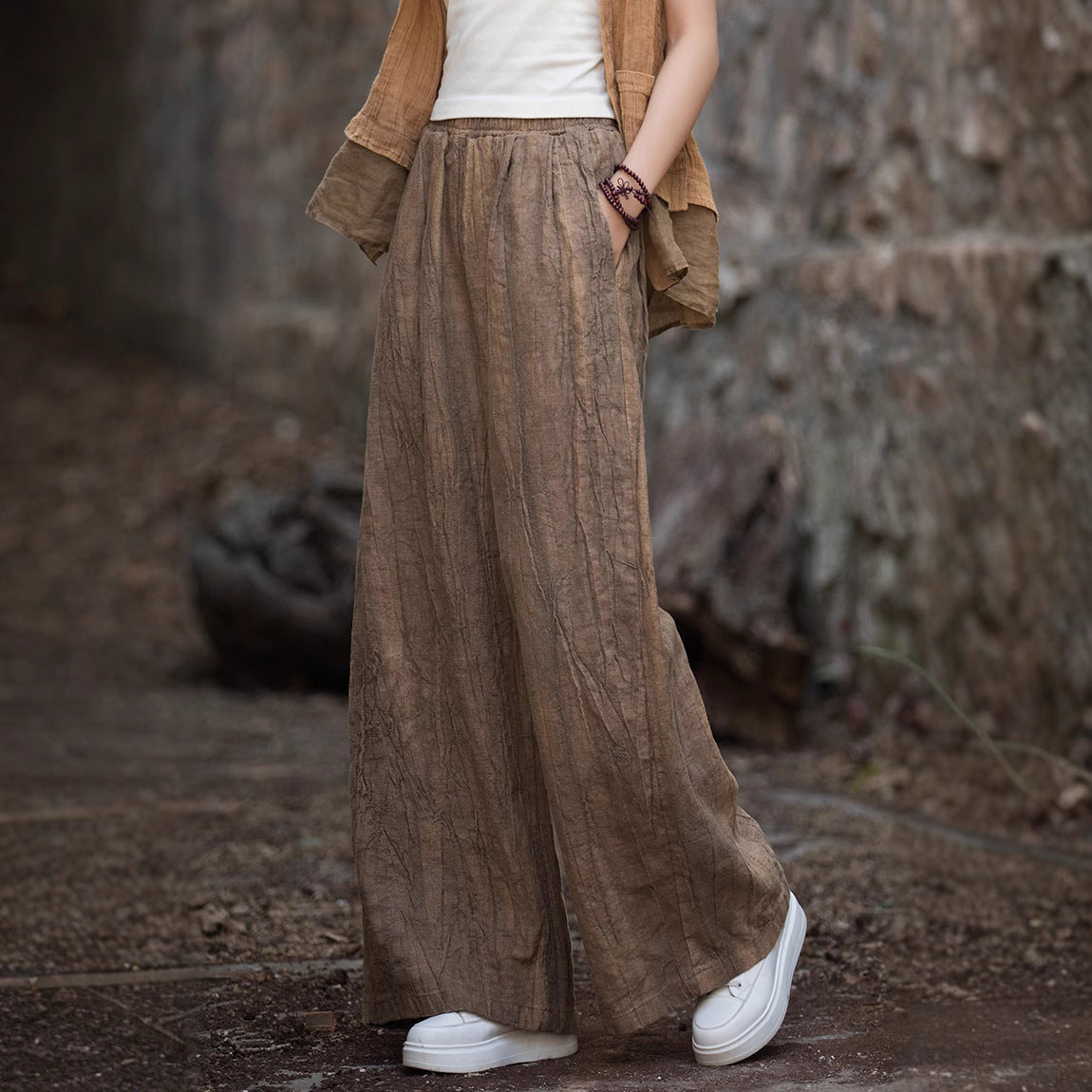 Women's Wide Leg Pants – Relaxed Fit – Elastic Waist – Breathable Natural Fabric