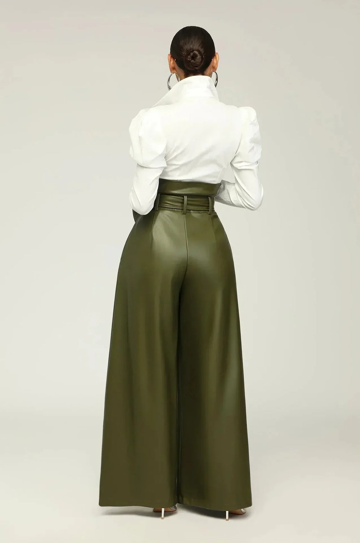 The high-waisted women's wide pants combine elegance with everyday comfort. This versatile pair is ideal for women seeking a stylish and practical garment.